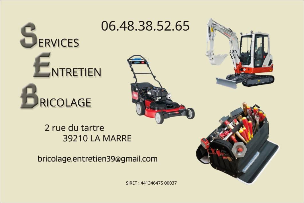 Découvrez toutes les informations concernant Entreprise de bricolage S.E.B Services Entretien Bricolage qui se situe au 2 Rue du Tartre, 39210 La Marre (39). Cette fiche inclut les photos, les horaires d'ouverture, l'adresse, le numéro de téléphone et les avis des clients.